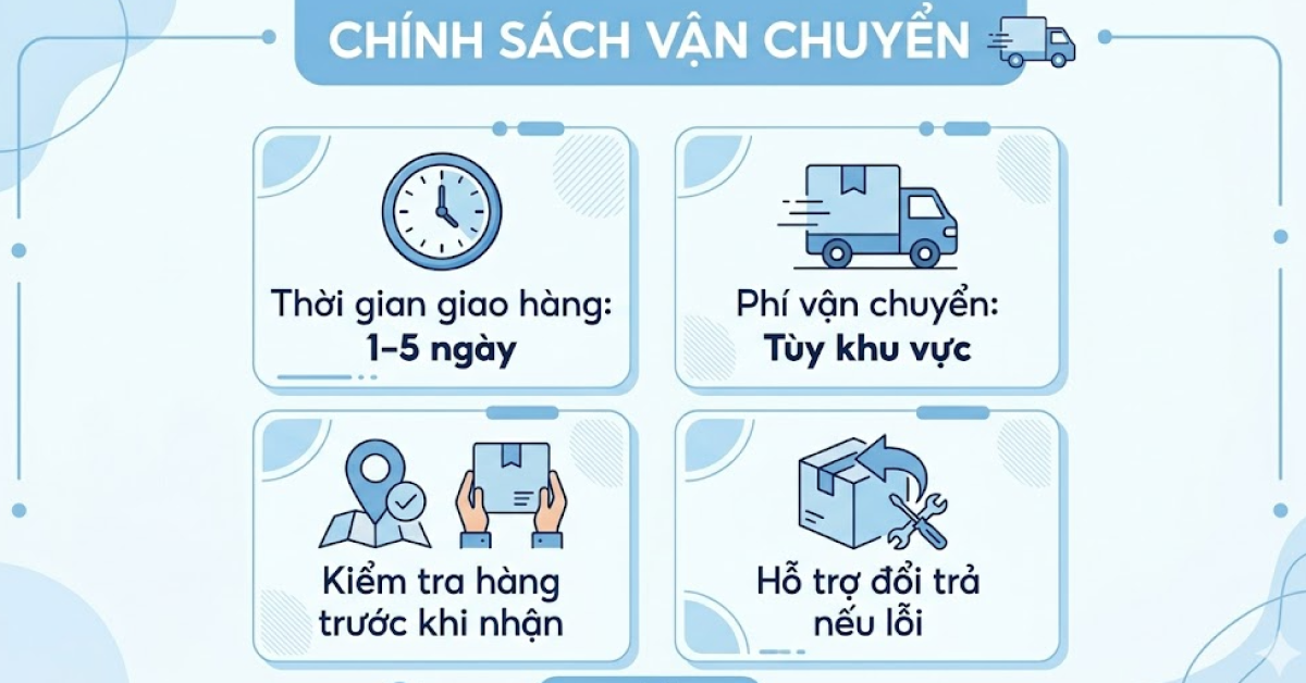 Phí giao hàng sẽ được tính tùy theo khu vực và hiển thị khi khách hàng đặt hàng.